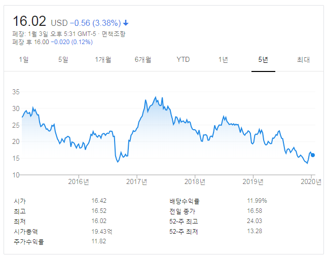 배당수익률은 9%. 분기 배당 꼬박꼬박 하고 있기 때문에 이만한 배당주도 없다. 사실상 정책 리스크가 제일 크다.