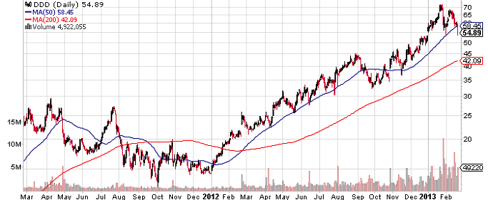 미국상장 3D SYSTEMS : 시총 31.30억달러. 매출 3.5억달러. 예상PER:44배입니다.