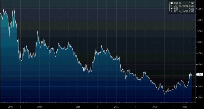 그리고 다시 페니메이가 주목받는 것은 모기지채권의 부실도가 줄어들고 있고, 오히려 모기지채권 금리가 상승한다는데 있습니다. 주택경기가 바닥을 치고 상승을 하는 중이라는 점이다. 채권 금리는 2012년 말부터 차츰 상승했고 4월부터 큰 상승을 보이고 있다. 지난 1분기에는 분기실적 흑자전환도 기록했습니다. 2분기는 다시 적자를 기록했습니다.