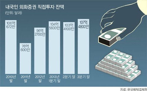 해외주식 투자는 매년 늘고 있다. 2011년에는 전반적인 증시 침체로 줄어들었고 다시 계속 늘어나고 있다. 그렇다고 증권사의 주머니가 두둑해진 것은 아니다. 해외주식을 서비스하는 증권사가 많이 늘고, 수수료 경쟁은 붙었다. 해외투자를 증권사들이 새로운 투자처로 생각하고 있다. 지난해 11월 기사에 보도된 것은 해외주식 투자는 늘었지만, 세수는 적게 걷혀서 탈세가 일어나는 것이 아니냐는 것이다. 물론 탈세는 거의 없을 것이다. 큰손일수록 20% 세금 내고 투자하면되지 굳이 탈세하여 가산세를 물을 위험성이 없다. 해외주식의 특성상 한 번 매수하면 매도기간이 길기 때문에 그런것일 것이다. 또한 큰 수익이 발생한 사람보다 손실이 발생한 사람이 많아서 그런것도 있다.
