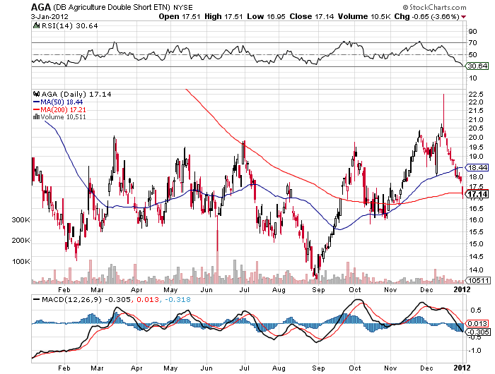 첫번째 상품은 곡물에 대한 더블 숏인 AGA라는 ETF입니다.